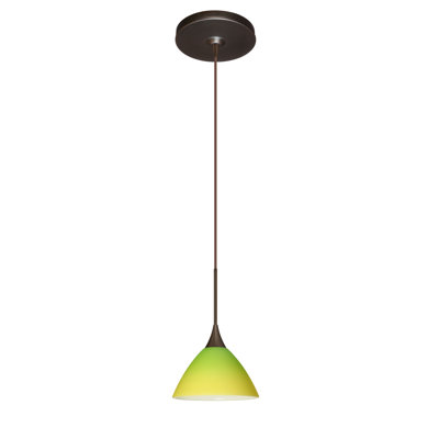 Domi 1 Light Mini Pendant Finish: Bronze, Glass Shade: Bicolor Green/Yellow