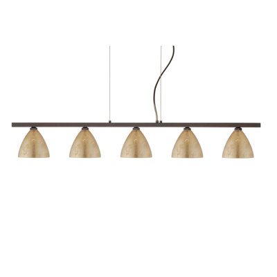 Mia 5 Light Cable Hung Linear Pendant Finish: Bronze, Glass Shade: Gold Foil
