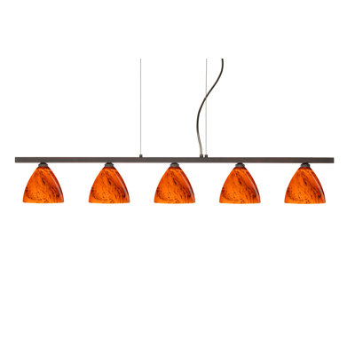 Mia 5 Light Cable Hung Linear Pendant Finish: Bronze, Glass Shade: Habanero