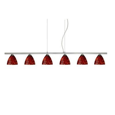 Mia 6 Light Cable Hung Linear Pendant Finish: Satin Nickel, Glass Shade: Garnet