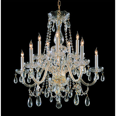 Traditional Crystal 12 Light Chandelier Crystal: Swarovski Spectra, Finish: Polished Brass