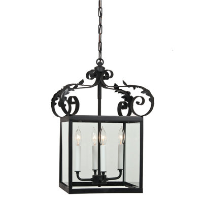 4 Light Large Scroll Foyer Pendant Finish: Matte black