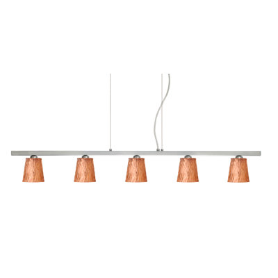 Nico 5 Light Linear Pendant Finish: Satin Nickel, Glass Shade: Stone Copper Foil