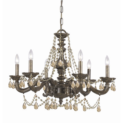 Sutton 6 Light Chandelier Crystal: Golden Teak Majestic Wood Polish